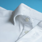 Beneath the surface, a split undercollar allows each side to move independently, so one edge never drags the other out of line. The result: collars that stay perfectly symmetrical, no matter how long you wear the garment.