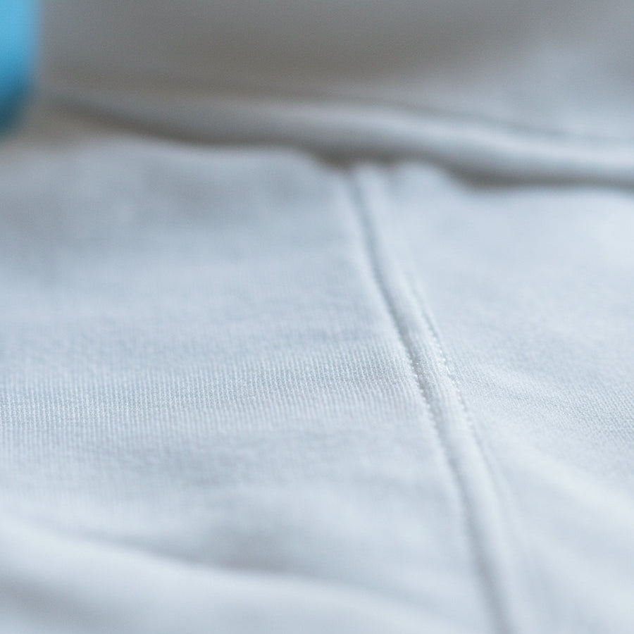 A triple-fold hem, secured with bar-tacks at each split, grounds the silhouette and prevents twisting. In white, every seam reveals its precision, form distilled to its purest expression.
